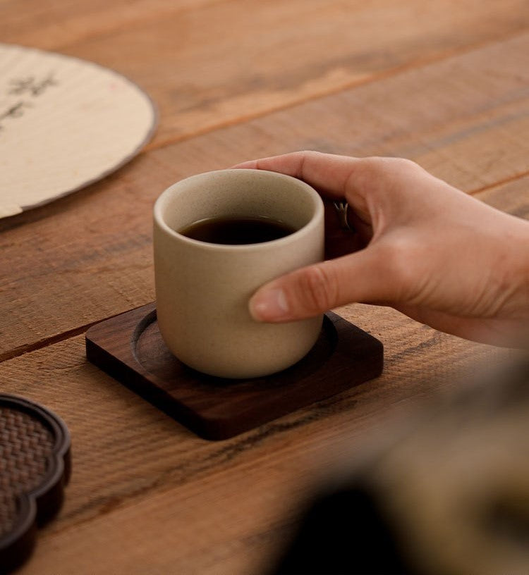 Each design pairs optionally with a carved wooden saucer for a complete tea or coffee moment. Whether used individually or as a set, these pieces elevate everyday sipping into a tactile, contemplative experience.