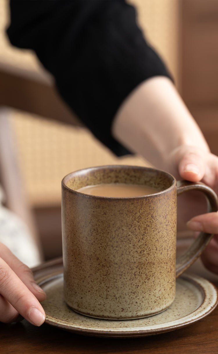 - Tactile Warmth — The vertical straight-walled body fits naturally in hand, while the saucer anchors the set with stability. Together, they create a balanced experience of touch and sight.