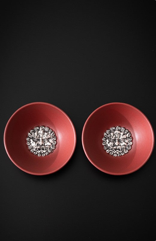 Fired at high temperatures, this cup features a rich Forbidden City Red glaze, paired with a hand-carved silver inlay of an auspicious lion motif at the base. The vibrant red signifies prosperity and vitality, while the silver guardian lion symbolizes protection, peace, and good fortune throughout the four seasons.