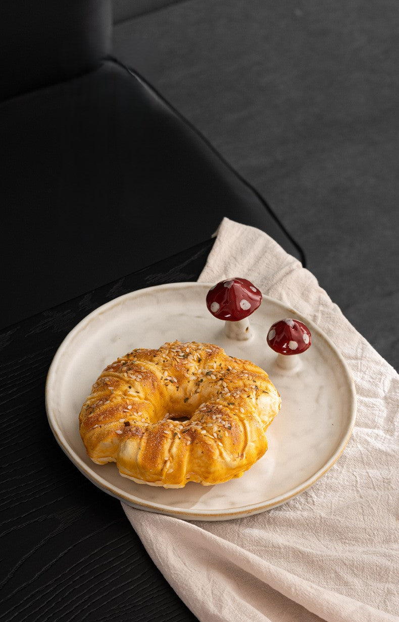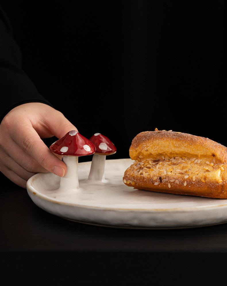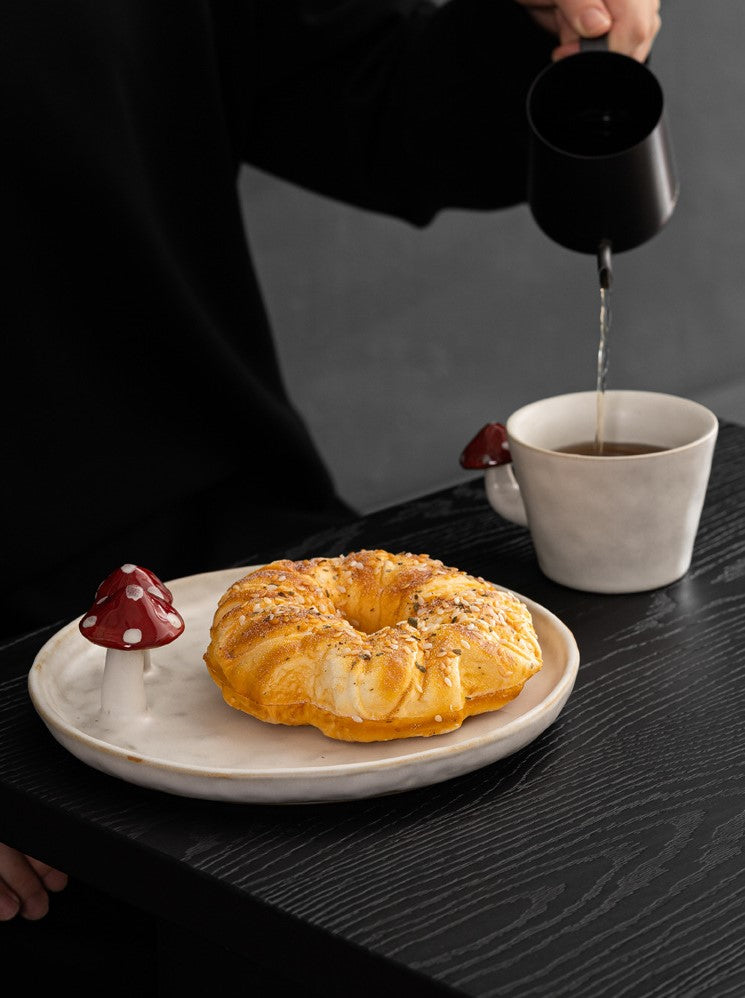 - Set Includes: 1 × 250ml coffee cup with hand-sculpted mushroom handle, 1 × ceramic spoon with mushroom detail, 1 × round mushroom dessert plate