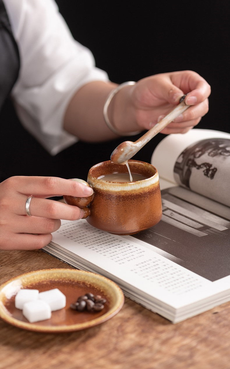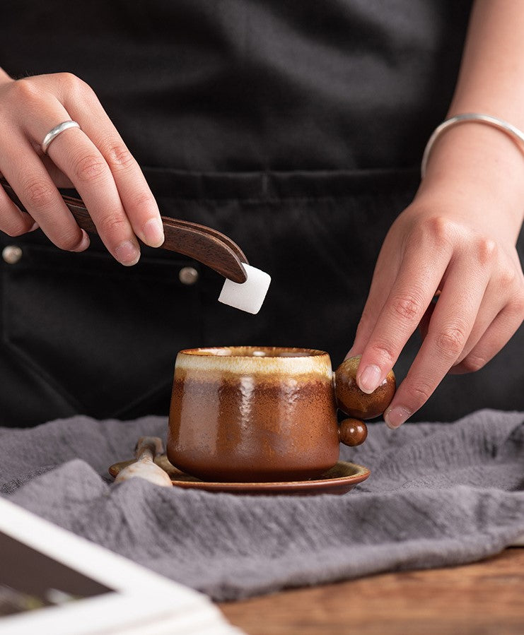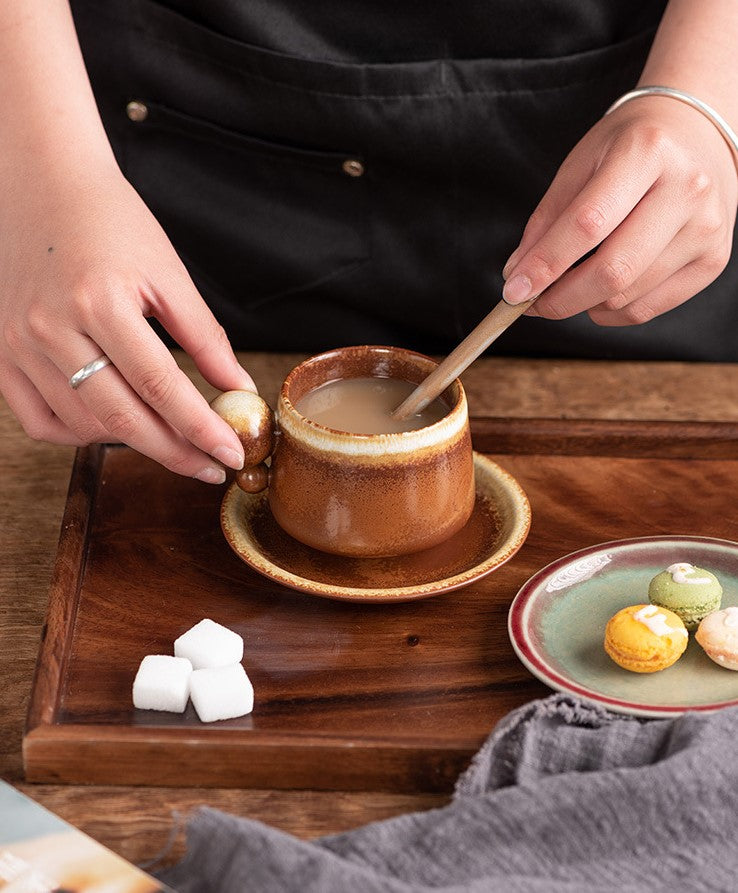 Where playful elegance meets kiln-fired artistry — each ball-handled cup and saucer set is a celebration of character, comfort, and creative café rituals.