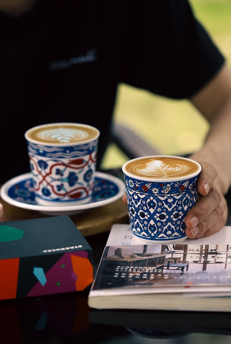 - Patterned Harmony — Each cup is wrapped in detailed floral and geometric motifs, where lines and colors flow seamlessly across the porcelain surface. The blue style evokes calm elegance, while the red design brings warmth and vibrancy.