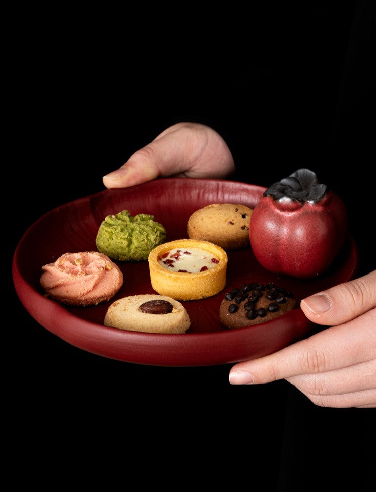 In the rounded glow of the persimmon and the warmth of red porcelain, a quiet blessing comes to life.