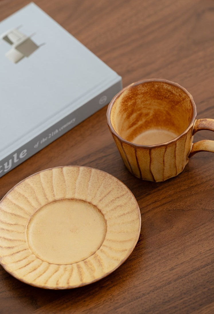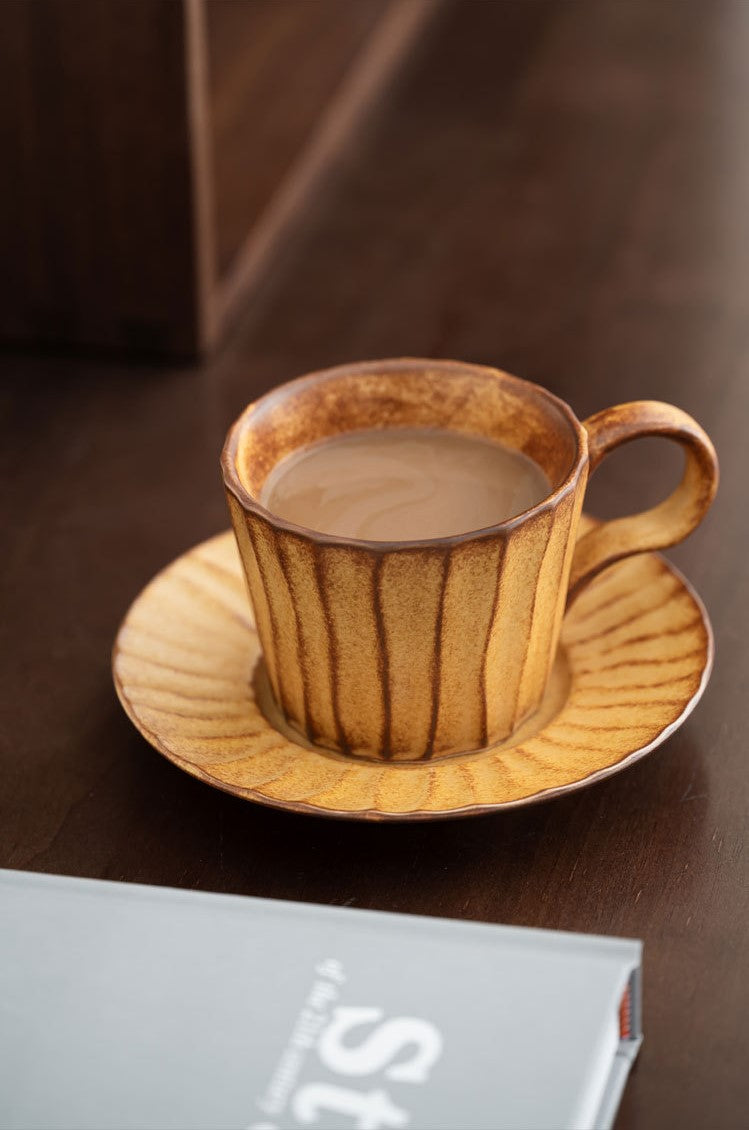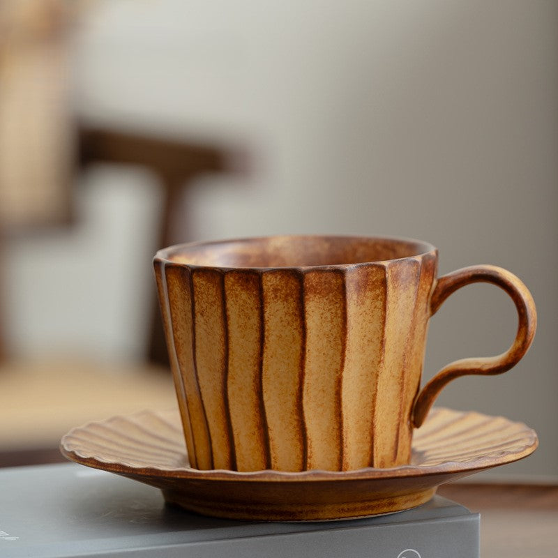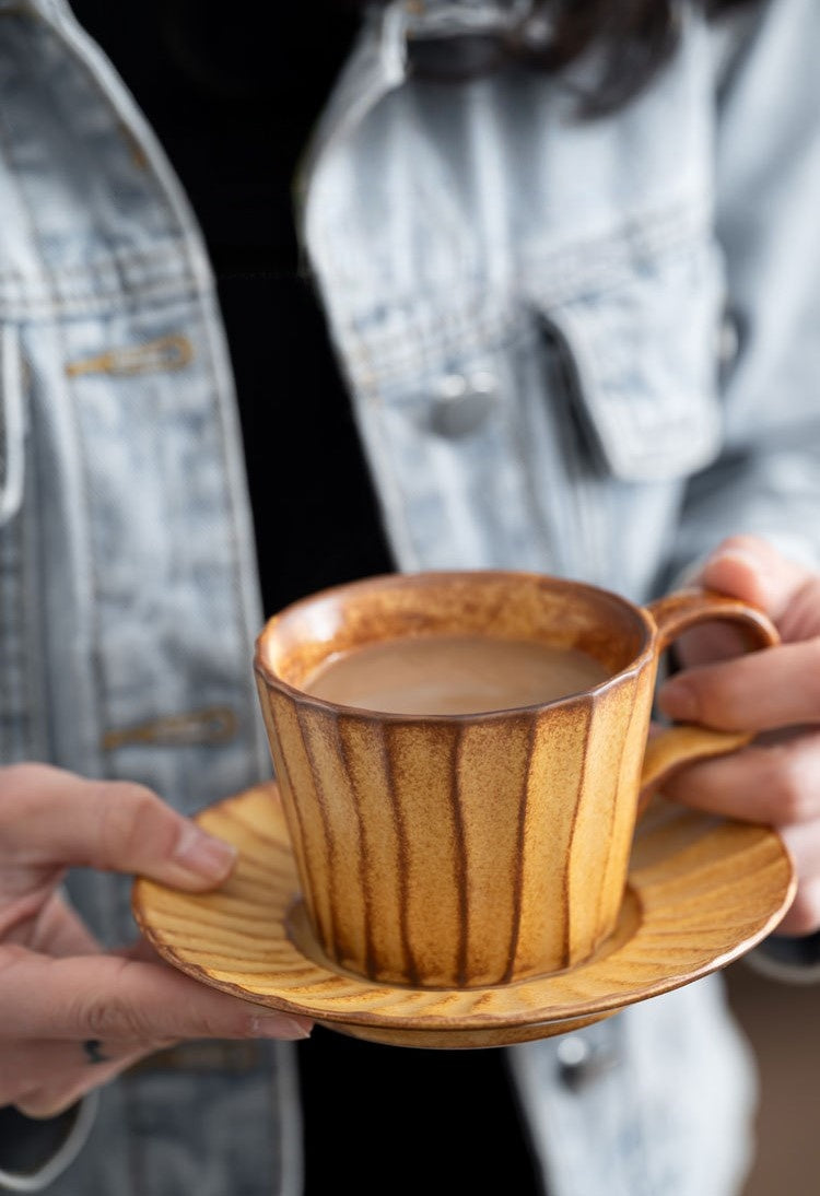 Ridge Flow – Handcrafted Wabi-Sabi Ceramic Coffee Cup with Saucer