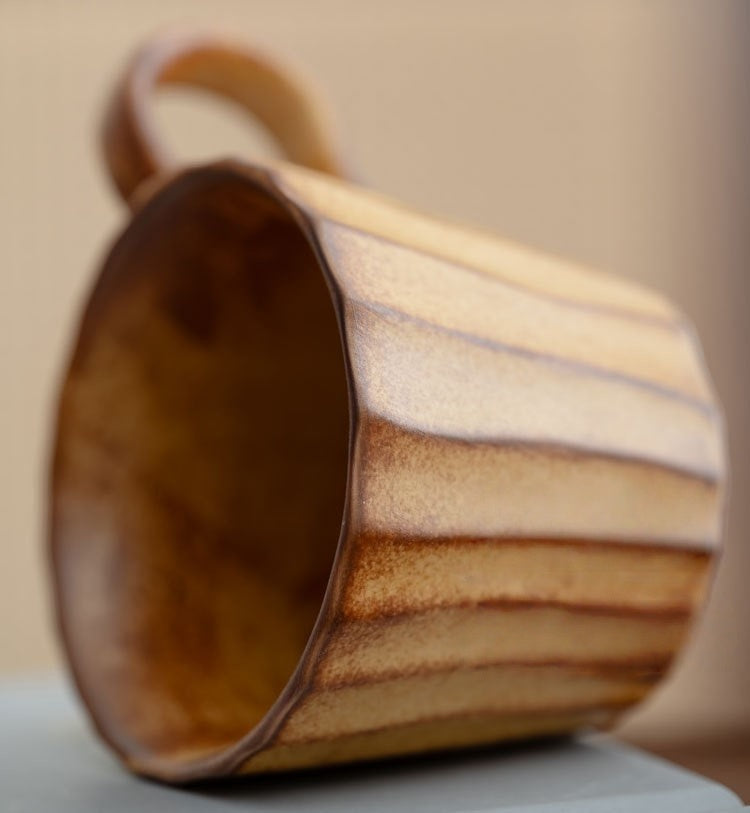 - Geometric Rhythm — The vertical stripe relief design creates a sculptural silhouette, combining minimalism with rustic elegance. The fluted body not only adds visual depth but also provides a comfortable, slip-resistant grip.
