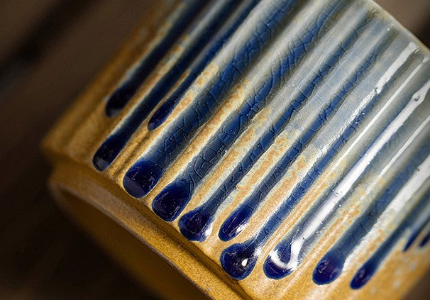 This ceramic coffee cup set is handcrafted in Jingdezhen and finished with a distinctive kiln-change glaze, giving each piece a one-of-a-kind surface with flowing tones and organic transitions. The coarse pottery texture adds a grounded, tactile feel, while the rich colors bring warmth and visual depth to every sip.