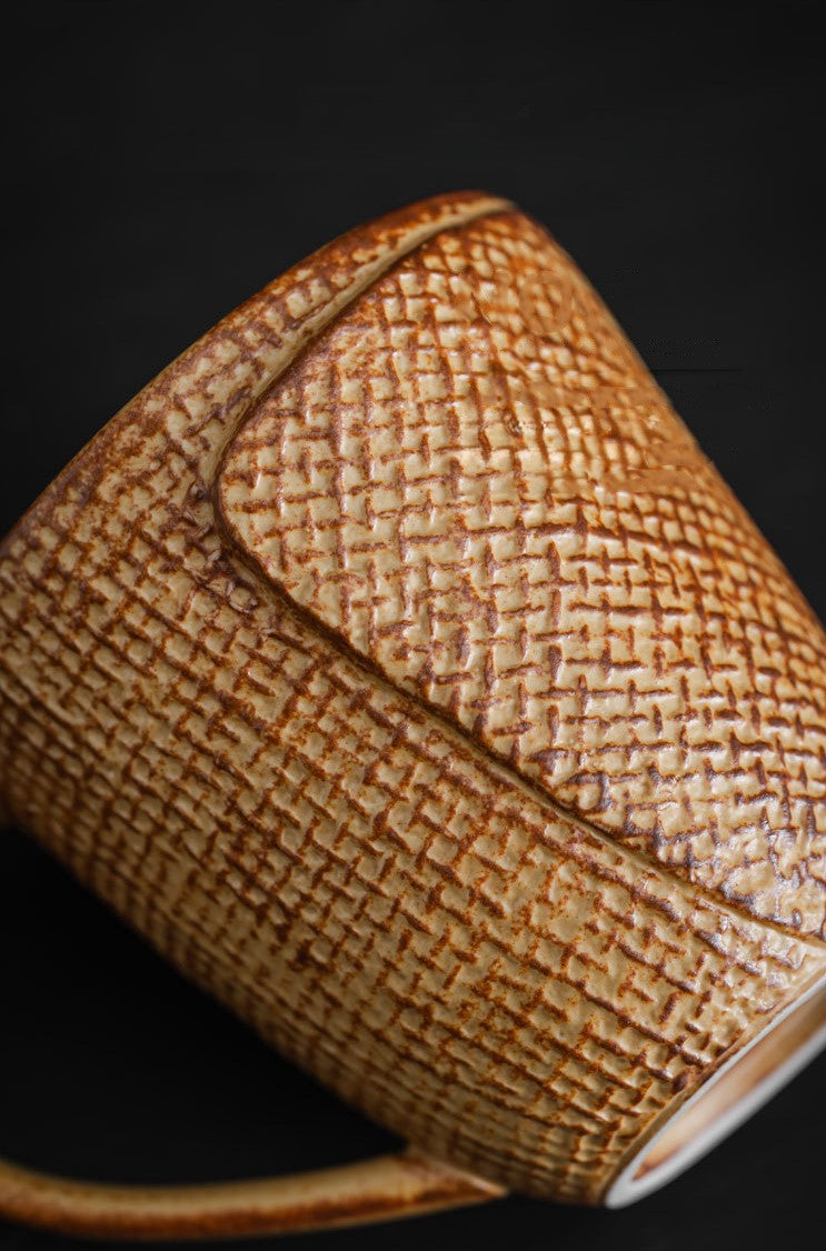 - Textured Harmony — The woven hemp-like relief symbolizes strength and balance, bringing a sense of grounded calm to everyday coffee rituals. Its tactile surface invites the hand to linger, turning each sip into a mindful pause.